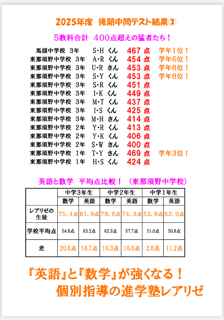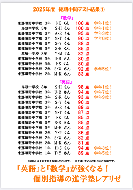 塾生たちが素晴らしい点数を取ってくれました❗️(上部写真をご覧ください)