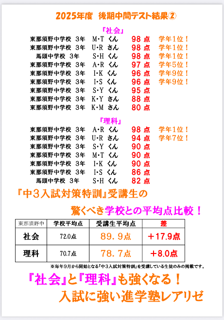 近隣の他塾よりも『高得点者たち』を育てております!